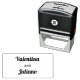 En stämpel med svart bläck för par som söker en klassisk och tidlös färg som kan komplettera olika bröllopsteman. Anpassa den genom att skriva brudens och brudgummens namn. Kontrollera utseendet efter att du har skrivit namnen. Om utseendet är tilltalande för dig kan du lägga din beställning nu. Om du behöver ändra storlek eller placering på namnen kan du justera i designverktyget. En stämpel för att lägga till en personlig touch och förhöja dina bröllops pappersvaror eller presenter. Till bruden och brudgummen, gratulationer på er förlovning! Vi önskar er båda en livstid fylld med kärlek och lycka.