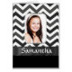 Anpassa det här trendigets moderna design med svart och vitt chevron zig zag mönster enkelt genom att lägga till ett eget foto av din älskade en och namn eller text till mallarna för att skapa en unik anpassad produkt. Besök PHOTOGIFTZ-STORE för matchande produkter. Mallfotobildtexten och den kan enkelt ersättas med en egen bild. Fotografier med samma 4 x 3-dimension bör ersätta mallbilden exakt. Om fotot har en annan dimension kan du behöva användan ANPASSA för att justera storleka, för fotot och text genom att dra och släppa.