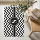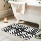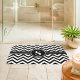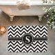 Lägg till en djärv och tidlös look i ditt badrum med denna svarta och vita chevronmonogrambadmatta. Det slående sicksackmönstret skapar en dramatisk, modern estetik, medan den anpassningsbara monogrammen lägger till en personlig touch. Perfekt för moderna, minimalistiska eller klassiska dekorstilar, denna badmatta kombinerar stil och funktionalitet utan ansträngning.