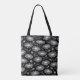 Denna design har en svart bakgrund med en illustration av vita linjekonst tusenskönor.