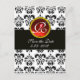 SVART OCH VIT DAMAST RÖD RUBIN MONOGRAM MEDDELANDE VYKORT