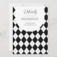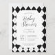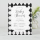 Klassisk, tidlös svart-vit argyle-barnvisningsinbjudan. Anpassningsbara typsnittsstilar och layout, med en enkel mönstrad bakgrund med rena, geometriska diamantformer. Perfekt för unisex barnvisningsinbjudningar, baby boy shower-inbjudningar och prep-inspirerade barnvisningsinbjudningar.