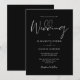 Denna eleganta svart-vita bröllopsinbjudan kan anpassas med din information i chic typografi. Designad av Thisisnotme