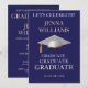 Samla vänner och familj för en speciell examensfest med denna svarta och vita examensfestinbjudan. Denna eleganta inbjudan är designad i ljust guld och vitt på svart bakgrund med en vit examenshattaccent. Framsidans text innehåller: examenstagarns namn och "Klass av År". Baksidans text innehåller: festdetaljerna i guld och vitt på svart bakgrund med vit examenshattaccent. För att anpassa, infoga bara dina textdetaljer i vår enkla mall och ersätt provet.