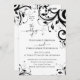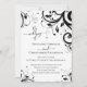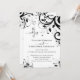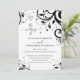 Den här festliga "bröllopet av" bröllopsinbjudan innehåller all information du behöver för att skicka till dina gäster. Inkludera bröllopsdetaljer på framsidan och ta med information om mottagning, hotell, resa, webbplats och svarsinformation på baksidan, inklusive en QR-kodlänk till din bröllopswebbplats. Festliga och fantasifulla svarta och vita virvlande design bröllopsinbjudan tryckta kort. Dekorativa virvlar med blad och rosor och vackra typsnitt med virvlande ligaturer. Enkel, modern och klassisk ren bröllopsinbjudan med dina anpassade bröllopsdetaljer och ytterligare information på baksidan av kortet.