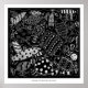 Whimsisk svart-vit fiskmönstrad konsttryck av Julie Nicholls©.