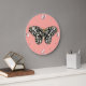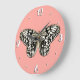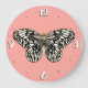 Svart och vit fjäril, korall rosa, bakgrund stor klocka