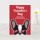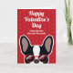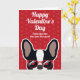 Franskbulldoggar, skicka ett valentinskort till din ägare bara från dig. Designen visar en illustration av en söt svart-vit fransk bulldog med röda solglasögon på en röd bakgrund med ett diskret hjärtmönster. Texten på framsidan lyder "Glad Alla Hjärtans Dag från den du älskar mest" men kan ändras. Texten på insidan lyder "Jag älskar dig paw-sitivt" men kan också ändras.