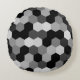 Svart och vit geometrisk hexagons skuggor rund kudde