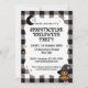 Bjud in dina vänner och familj till din Halloween-fest med denna snygga svart-vit checkad gingham-inbjudan. Designen har ett klassiskt rutmönster med Halloween-grafik, vilket gör den perfekt för vilken Halloween-inspirerad fest som helst.