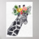 Svart och vit giraff i blomkrona djur poster