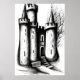 En skiss av ett slott i svartvitt. Det här är en AI-skapad konst.