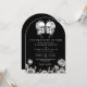 Denna svarta och vita 'tills döden skiljer oss åt' gotiska blommiga dödskallar bröllopsbåge inbjudan kan anpassas med din information i modern typografi. Designad av Thisisnotme