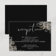 Detta eleganta rosor blomster gotiska bröllopsmottagning detaljer insättning kort kan anpassas med din information i chic vit typografi på en svart bakgrund. Designad av Thisisnotme