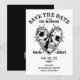 Svart och vit gotisk dödskalleparbröllop spara datumet
