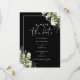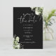 Denna eleganta svart-vita botaniska grönska blomster förhandsinbjudan kan anpassas med din information i chic typografi med din bröllopswebbplats QR-kod och detaljer på baksidan. Designad av Thisisnotme