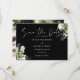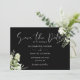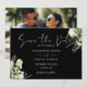 Svart och vit grönska blomsterfoto bröllop spara datumet