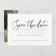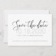 Enkel, minimal, Elegant Skriptteckensnitt Spara datumkortet i svartvitt och grått med stora datumnummer för bröllop i en typografisk design och utrymme för ditt eget foto på baksidan. Anpassa mallen genom att markera färg och typsnitt som du vill ha för bröllop-meddelanden.