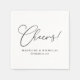 En modern svart-vit bröllopsservett med ordet "Cheers!" i elegant kalligrafi, personlig med parets namn och bröllopsdatum. Denna stilrena och sofistikerade design är perfekt för mottagningar, bröllopsmiddagar, förlovningsfester och brudshower. Den minimalistiska typografin ger en tidlös touch, vilket gör den idealisk för både formella svarta band-bröllop och avslappnade firanden. Oavsett om de används vid baren, cocktailtimmen eller middagsbordet, tillför dessa servetter en förfinad men festlig touch till din speciella dag. Ett klassiskt och mångsidigt tillskott till alla bröllopsteman, designat för att imponera på gästerna med sin eleganta enkelhet.
