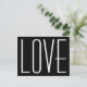 Svart och vit "KÄRLEK"-textdesign i ett enkelt teckensnitt med tunn elegant framtill. Samordna Spara datuminformationen för bröllop på baksidan.