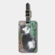Svart och vit katt i grönt bagagebricka