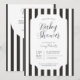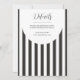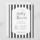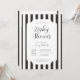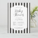 Klassisk, tidlös svart-vitrandig babyfestinbjudan. Anpassningsbara teckensnittsstilar och layout, med en enkel mönstrad bakgrund med rena, linjära vertikala markisränder. Perfekt för unisex-inbjudningar till baby shower, inbjudningar till baby boy shower och minimalistiska baby shower-inbjudningar.