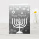 Svarta och vita Davidstjärnor och Glad Hanukkah menorah personlig kort.