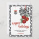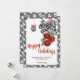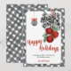 Skicka varma önskningar med stil med detta svart-vita Noël-helgkort. Med en chic svart-vit ginghamsrand, festliga röda bjällror, randig band och eleganta hängande ornament, förenar denna design klassisk julcharme med modern lantlig stil. Personifiera med ditt familjenamn och hälsning för att skapa en hjärtlig minnessak som sprider fred, kärlek och glädje hela säsongen.