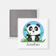 En bedårande svart och vit panda björn som sitter på fräscht grönt gräs och håller på en grön bambupinne. Nedan finns en mall för att lägga till ditt eget namn eller meddelande eller ta bort för att lämna tomt.