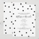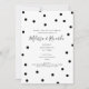 Söta svarta och vita prickar är utspridda runt dina personliga förlovningsfestdetaljer på denna eleganta moderna, enkla förlovningsinbjudan. Designad av Thisisnotme