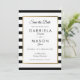 Med en klassisk svart-vit randig bakgrund har detta eleganta "save the date"-kort en elegant falsk guld-folie ram som inramar din "save the date"-information i elegant typografi. Designad av Thisisnotme