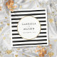 Med en klassisk svart-vit randig bakgrund har dessa eleganta bröllopspappers servetter en elegant falsk guld-folie ram runt era namn och speciella datum i chic typografi. Designad av Thisisnotme