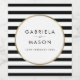 Med en klassisk svart-vit randig bakgrund har dessa eleganta bröllopsflasketiketter en elegant falsk guldfolierad ram runt era namn och speciella datum i chic typografi. Designad av Thisisnotme©
