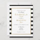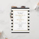 Denna stilrena bröllopsinbjudan har en elegant falsk guld folie kant som inramar din bröllopsinformation i chic svart och guld typografi på en klassisk svart-vit randig bakgrund och ditt speciella foto på baksidan. Designad av Thisisnotme©
