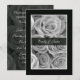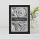 Klassisk elegans beskriver denna underbara svarta och vita blomros bröllopsinbjudan. Du kan anpassa framsidan med dina namn och baksidan, som har ett ogenomskinligt foto av rosor, innehåller alla viktiga detaljer om bröllopet. Copyright henishouseofpaper