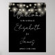 Denna svarta och vita strängljus eleganta skrivstil bröllopsväkommen skylt kan anpassas med din information i chic typografi. Designad av Thisisnotme