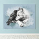 Varg och kråka i svartvitt på vattenfärgen tvättar bakgrund - ändra den faktiska bakgrunden färg till kostym till din dekoration - vi valde en dammig blå färg här. Underbar spritdjurskonst. Finns i många storlekar.