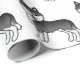 Desteis ursprungliga tecknad illustrerar en svart och vit jackar hund av färg Siberian husky som mönster.