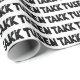Digitaliserat svart och vitt linjefärg med texten "Tack" på norska ("Tusen Takk").