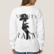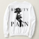 En ro-design på baksidan med alternativ för anpassade för att byta kläder framtill och baktill med "Beauty Is Pain" i baksidan