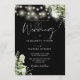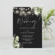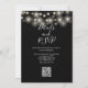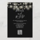 Denna eleganta svarta och vita bröllopsinbjudan med fina strängljus och blomstergrönska kan anpassas med din information i chic typografi med din bröllopswebbplats information och din QR-kod på baksidan. Designad av Thisisnotme