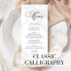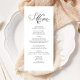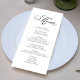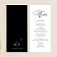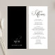 Den här designen har ett menykort för bröllop med en svart och vit stil-elegant, kalligrafi, ett klassiskt, middagsprogram och ett klassiskt ampersand på baksidan.
