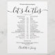 Denna stilrena svarta och vita bröllopsschema tidslinje kan anpassas med dina bröllopsdetaljer i chic bokstavsstil. Designad av Thisisnotme©