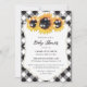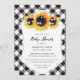 En söt svartvit buffeldoppningsinbjudan för blommigt med solblommor och snöre ljus på en svart och vit bakgrund. Matchande objekt är tillgängliga.