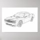 Svart och vitt Dodge Challenger Pencil Teckning Poster
