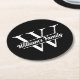 Svart och Vit | Enkel Familjenamn Monogram Rund Pappersunderlägg