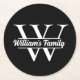 Svart och Vitt | Enkel familjenamnsmonogram rund pappersunderlägg