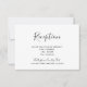 Detta bröllopsmottagningskort har en enkel svart och vit design med trendig handskriven text. Baksidan är svart med ett diagonalt vitt randmönster.