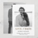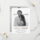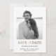 Meddela din speciella dag med den här eleganten spara datumkortet med ett klassiskt svartvitt foto med skarp vit bakgrund. Texten "Spara datumet" markeras i luxuriös faux metallic guld, vilket ger designen en smula sofistikering och elegans. Perfekt för par som vill ha ett tidlöst och modernt estetiskt kort, det här kortet är enkelt anpassade med dina foto- och bröllop-detaljer, skapar det vara en minnesvärd keepé för dina gäster.