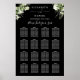 Svart och vit elegant blomstergrönska bröllopsplatskarta med signaturstilnamn, denna snygga och stilrena platskarta kan anpassas med din information i modern typsnitt. Designad av Thisisnotme